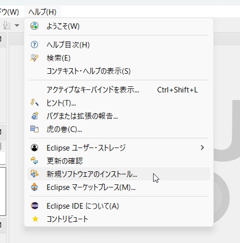 eclipseメニューの[ヘルプ]→[新規ソフトウェアのインストール…]を選択します。